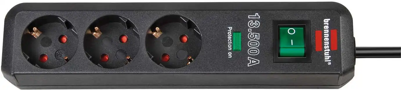 Brennenstuhl 1158810315 Eco-Line 13.500A prise multiple avec protection contre les surtensions 3-gang anthracite 1,5m H05VV-F 3G1,5 Blister